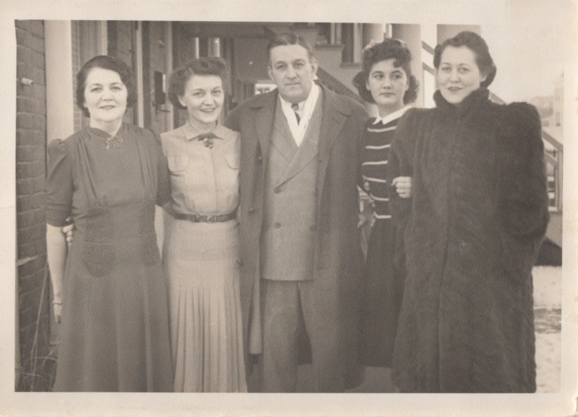 Della, her sister Kathryn, Tom, Mary Kay and sister Marion in 1941