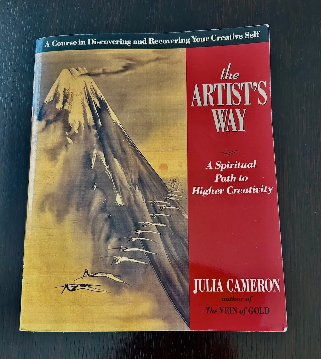 My morning pages practice began in earnest about 1994 with my discovery of Cameron's book, subtitled, A Spiritual Path to Higher Creativity, maybe a little woo-woo for me but... In the beginning I worked diligently through her 12 week "course" writing my three pages a day, answering her challenging questions, and taking myself on a weekly artist's date alone. Over the years what stayed with me was the daily journaling — me writing to stay in touch with myself, to figure out what I want to accomplish, sometimes to help me get out of my own way. Happy times or sad, I turn to my journal.
