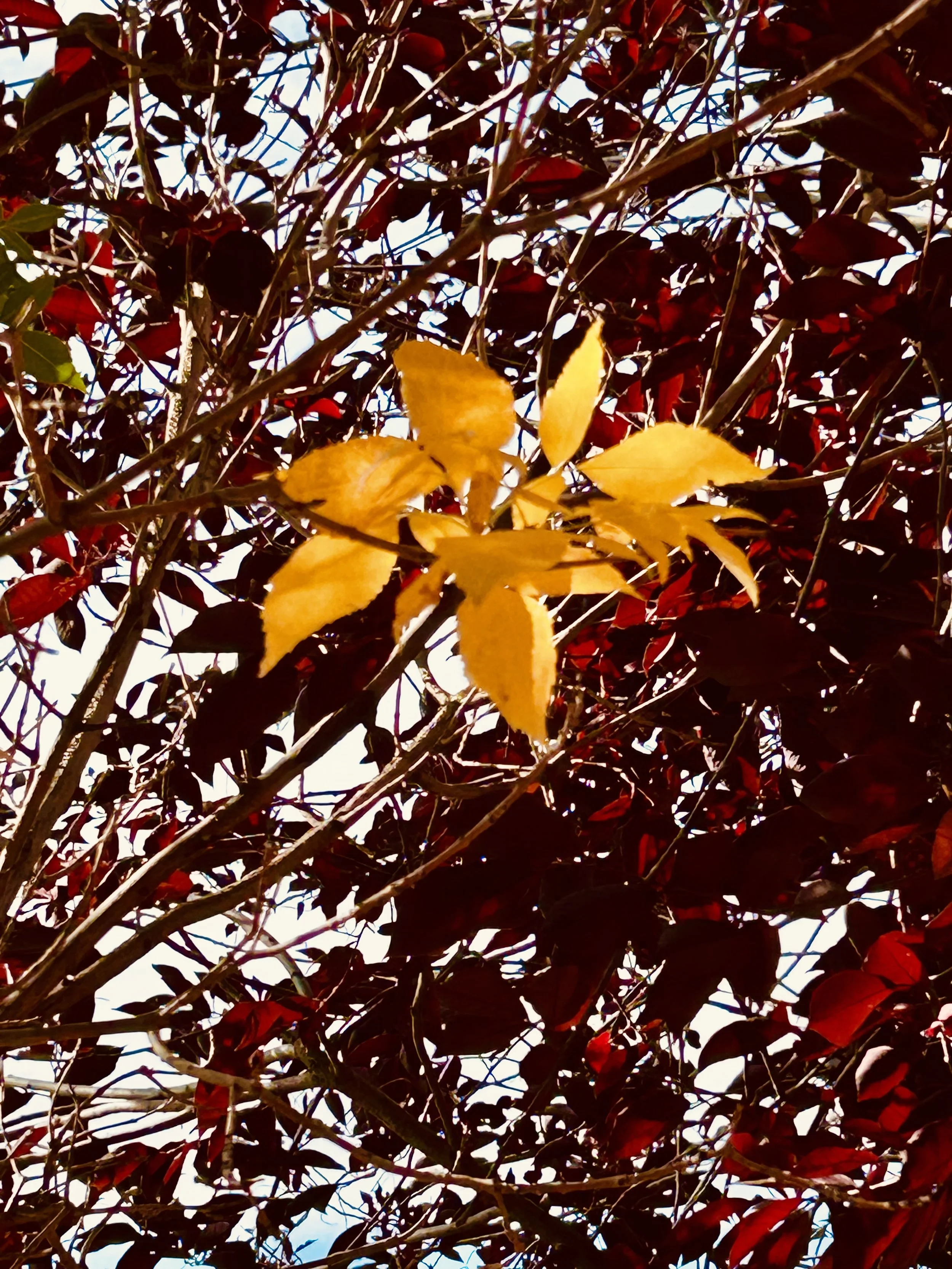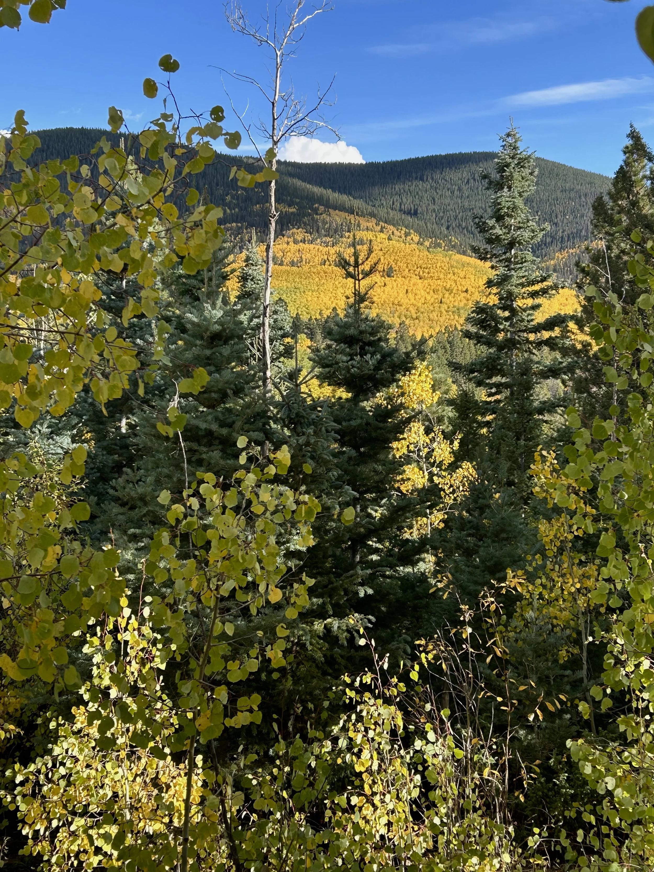 Autumn has arrived in full color. It snuck up on me this year. First, I noticed how the light was changing, lower, softer, slanting into long shadows. Then there was a chill in the evening air that ended our al fresco dinners. Finally, the leaves were quickly changing in our garden and now on the Sangre de Cristos. Shades of red and gold fluttering down, bright patches of yellow on the distant mountain.